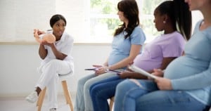 An expectant mom goes to her prenatal visit. Her doctor tells her to eat healthier. They ask her to monitor her blood pressure. They schedule her next appointment and encourage her to avoid stress because it isn’t good for her or her baby.